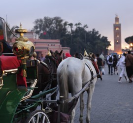 Fondée en 1062, Marrakech, la deuxième plus ancienne ville impériale du Maroc est connue sous le nom de « Perle du Sud ». Visite des monuments historiques : la Koutoubia, le palais Bahia et les tombeaux saadiens. La visite comprend également les rues étroites de la vieille Médina. Fin de l’excursion à la place Djemaa El Fna, considérée comme le plus célèbre et populaire, à Marrakech, connue pour son agitation.